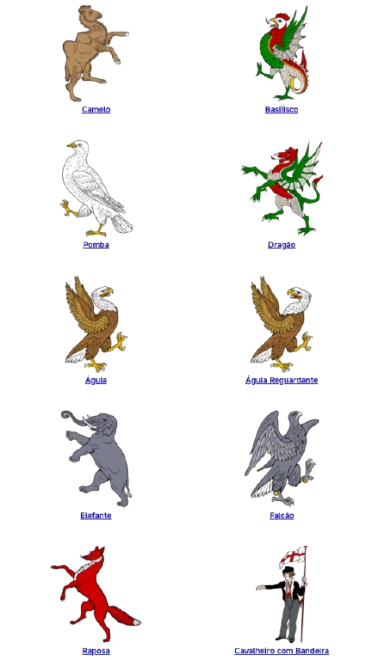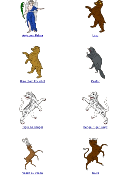 LEÕES E GATOS - LAMBREQUINS/MANTOS - VEADOS, CERVOS E RENAS - PÁSSAROS - MILITARES ARMAS MEDIEVAIS - CAVALEIROS E SUPORTE DE ESCUDOS - PEIXES E VIDA MARINHA - SERPENTES E RASTEJANTES - COROAS, CORONÉIS E CAPS - MODELOS DE ESCUDO - ANTÍLOPES, RAPOSAS E CABRAS - MACACOS - GALGOS, TALBOTS/CÃES DE CAÇA - CAMELOS, LEBRES, CARNEIROS E CORDEIROS - LOBOS, CAVALOS E ANIMAIS DIVERSOS - DRAGÕES E MITOLOGIA - FLORA - FIGURAS HUMANAS - CASTELOS E PONTES - MARINHA - CRUZES DE HERÁLDICA - PASTA DE DESIGN - ESCUDO EM BRANCO E APRESENTAÇÕES - URSOS, TOUROS, JAVALIS E BOIS - ELEFANTES - ESTRELAS, CRESCENTES, SÓIS - PASTAS INANIMADAS - TRABALHOS, OFÍCIOS E TOCHAS - LEÕES HERÁLDICOS ÁGUIAS DA HERÁLDICA BESTAS HERÁLDICAS.